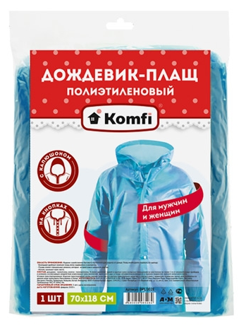 Дождевик 70*118 с застежками ПВД (цвет голубой) 1/100