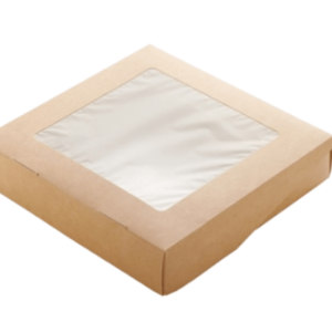 Коробка белая с окном, размер 300*300*300см. Используется для упаковки, хранения и транспортировки кондитерских изделий. Внешний вид изделия можно оценить через окно сверху. На дне упаковки имеются вырезы для надежного крепления упаковочной ленты. Коробка помогает хранить изделие экологично и компактно.