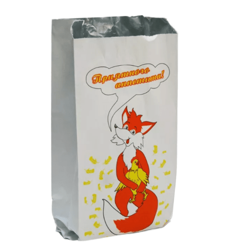 Фольгированный гриль-пакет с V-образным дном и цветной печатью размер 24×31 мм, используется для упаковки и сохранения тепла горячих продуктов.