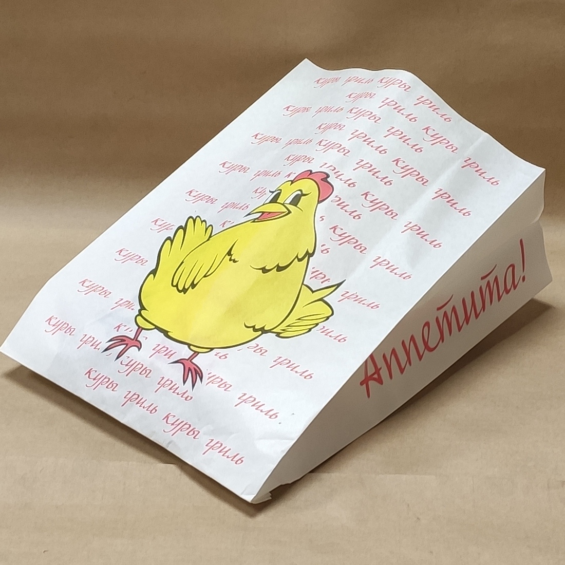 Фольгированный гриль-пакет с V-образным дном и цветной печатью размер 24×31 мм, используется для упаковки и сохранения тепла горячих продуктов.