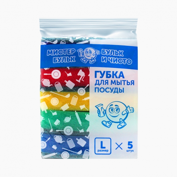 Губка для посуды универсальная. Мягкая сторона – для повседневной и деликатной очистки. Грубый слой справляется с самыми трудными загрязнениями. Тщательно очищает, не повреждая деликатную поверхность. В упаковке 5 штук.