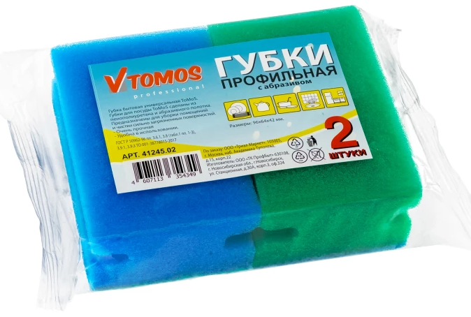 Губка для посуды 96*64*42мм 2шт/уп Томос ДАВ 96шт/уп