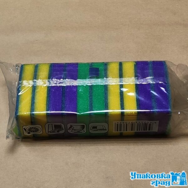 Губка для посуды универсальная. Мягкая сторона – для повседневной и деликатной очистки. Грубый слой справляется с самыми трудными загрязнениями. Тщательно очищает, не повреждая деликатную поверхность. В упаковке 10 штук.
