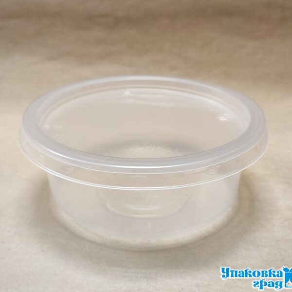 Герметичный круглый контейнер сохраняет тепло и исключает протекания. Используется для горячих блюд и повторного разогрева в СВЧ. Возможно использовать на автоматических линиях, пастеризация и стерилизация. В коробе 500 шт.