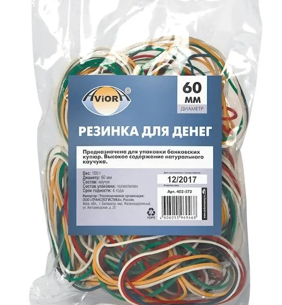 Резинка для денег канцелярская, диаметр 60 мм цветная Предназначена для упаковки денежных купюр, скрепления документов, в том числе свернутых в рулон (чертежи, плакаты), мелкой фасовки овощей, зелени, цветов. Товар используют в банках, офисах, торговых точках, фармацевтических компаниях, а также для бытовых нужд.