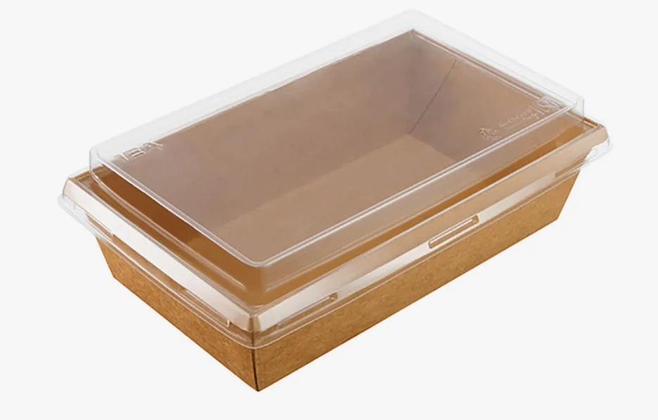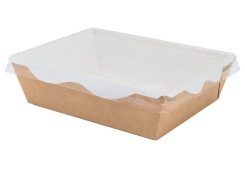 Контейнер картонный Крафт 400мл с прозрачной крышкой. Не требует сборки, крышка надежно защелкивается и обеспечивает герметичность. Контейнер влаго и жиро устойчив. Прозрачная крышка позволяет оценить внешний вид продукта. Контейнер подходит для готовых блюд (в т.ч.жирных и горячих), салатов и десертов, каш и продуктов с жидкими составляющими, кондитерский изделий, пасты и лапши (с соусом и без), суши / роллов.