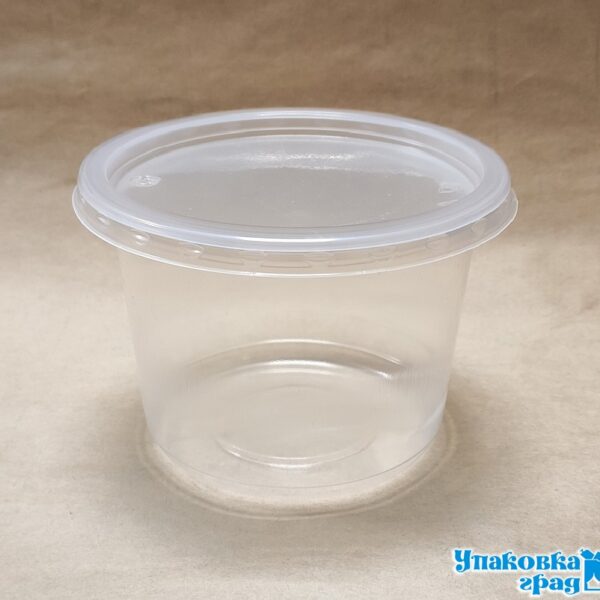 Круглый контейнер для супа с прозрачной крышкой. В коробе 150 шт.