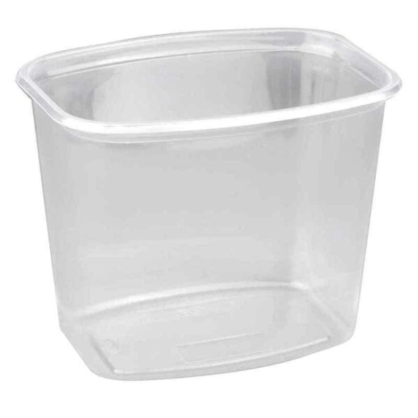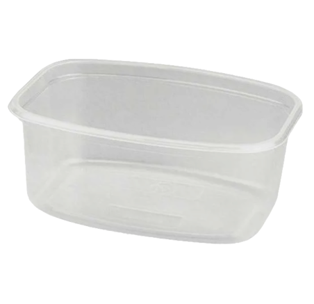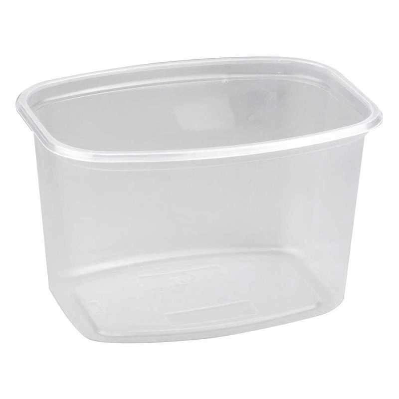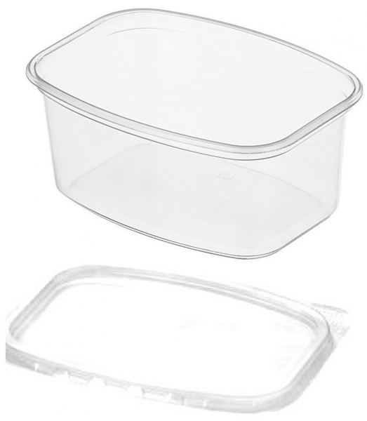 Прозрачный прямоугольный контейнер с крышкой предназначен для фасовки продуктов питания. Возможно использование в холодильнике и СВЧ. В коробе 500 шт.