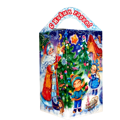 Коробка НГ 600г Домик веселье МГК 250шт/уп