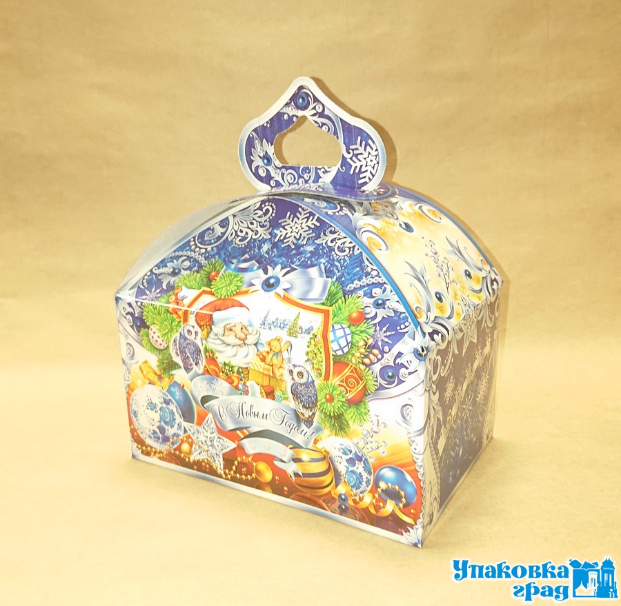 Коробка НГ 600г Домик веселье МГК 250шт/уп