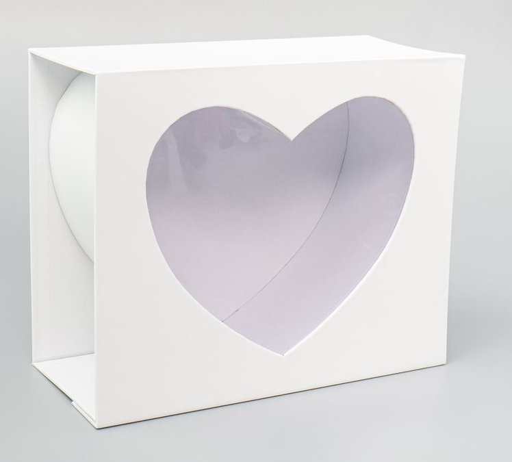 Коробка для цветов Сердце раскладное окно 24*20*10,8см белая