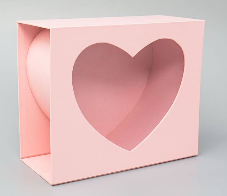 Коробка для цветов Сердце раскладное окно 24*20*10,8см розовая