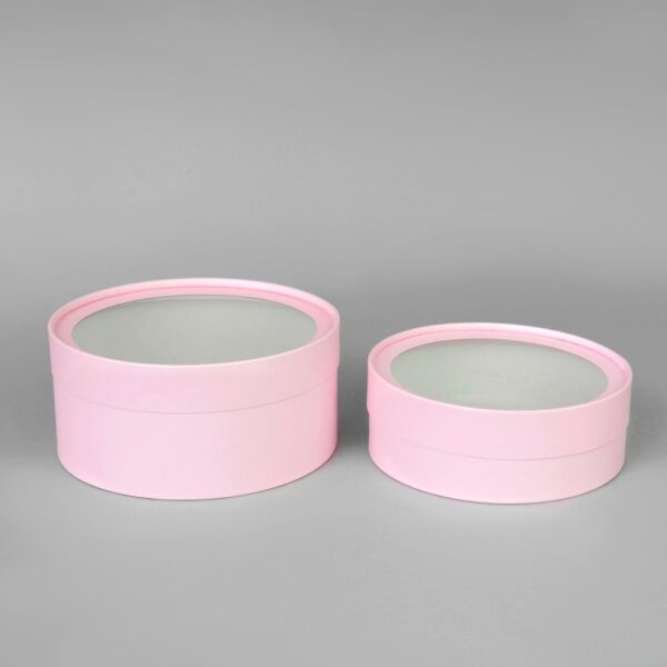 Коробка -круг 2в1 h9*d18см с окном розовая