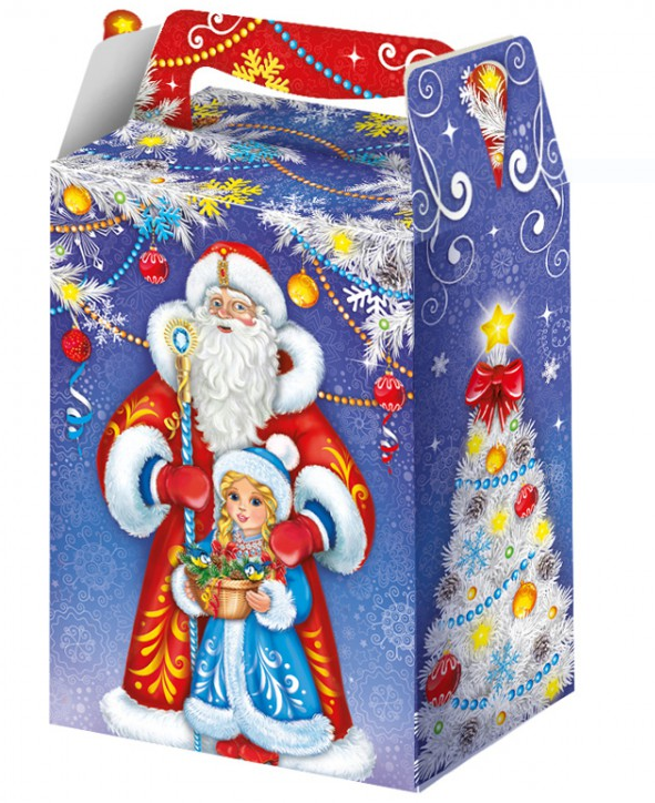 Коробка НГ 1кг Дед Мороз+Снегурочка с окном 150шт