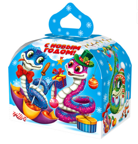 Коробка НГ 900г Подарок Змейки. Символ 2025г 150шт/УФ/ТП