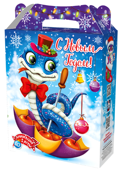 Коробка НГ 900г Подарок Змейки. Символ 2025г 150шт/УФ/ТП
