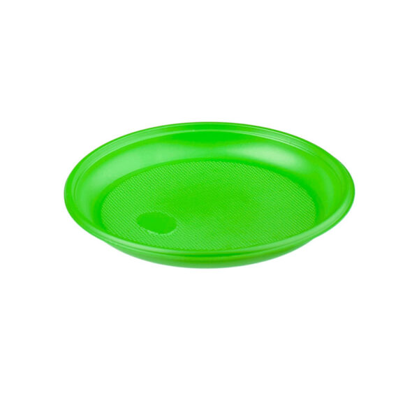 Тарелка одноразовая зеленого цвета, диаметр 165мм, изготовлена из полипропилена. Универсальная тарелка подходит для подачи вторых блюд, десертов, нарезок в пунктах горячего питания, на разных мероприятиях, на пикниках, днях рождения.