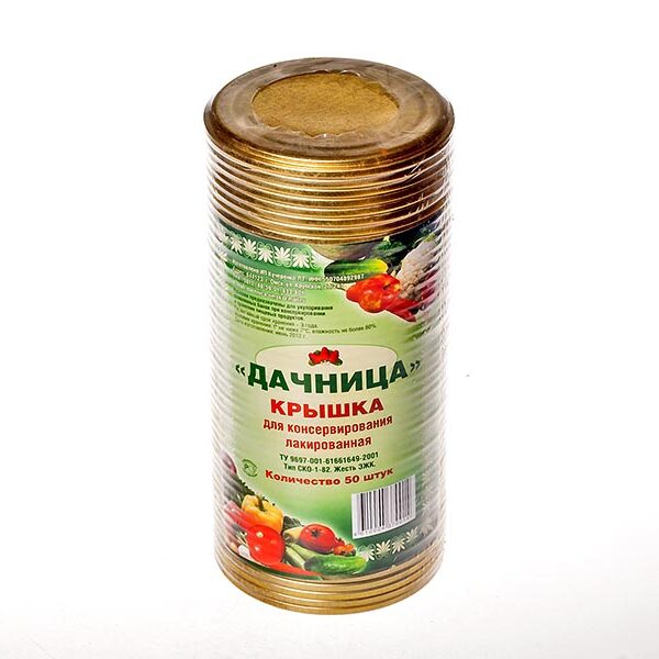 Крышки металлические закаточные, используются для укупоривания стеклянных консервных банок с венчиком горловины типа I номер 82. Крышки применяют при консервировании овощей и фруктов, мясо-овощных консервов, томатной пасты, варенья, джемов, тушёнки, соков, компотов.