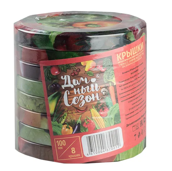Крышки металлические закаточные, используются для укупоривания стеклянных консервных банок с венчиком горловины типа I номер 82. Крышки применяют при консервировании овощей и фруктов, мясо-овощных консервов, томатной пасты, варенья, джемов, тушёнки, соков, компотов.