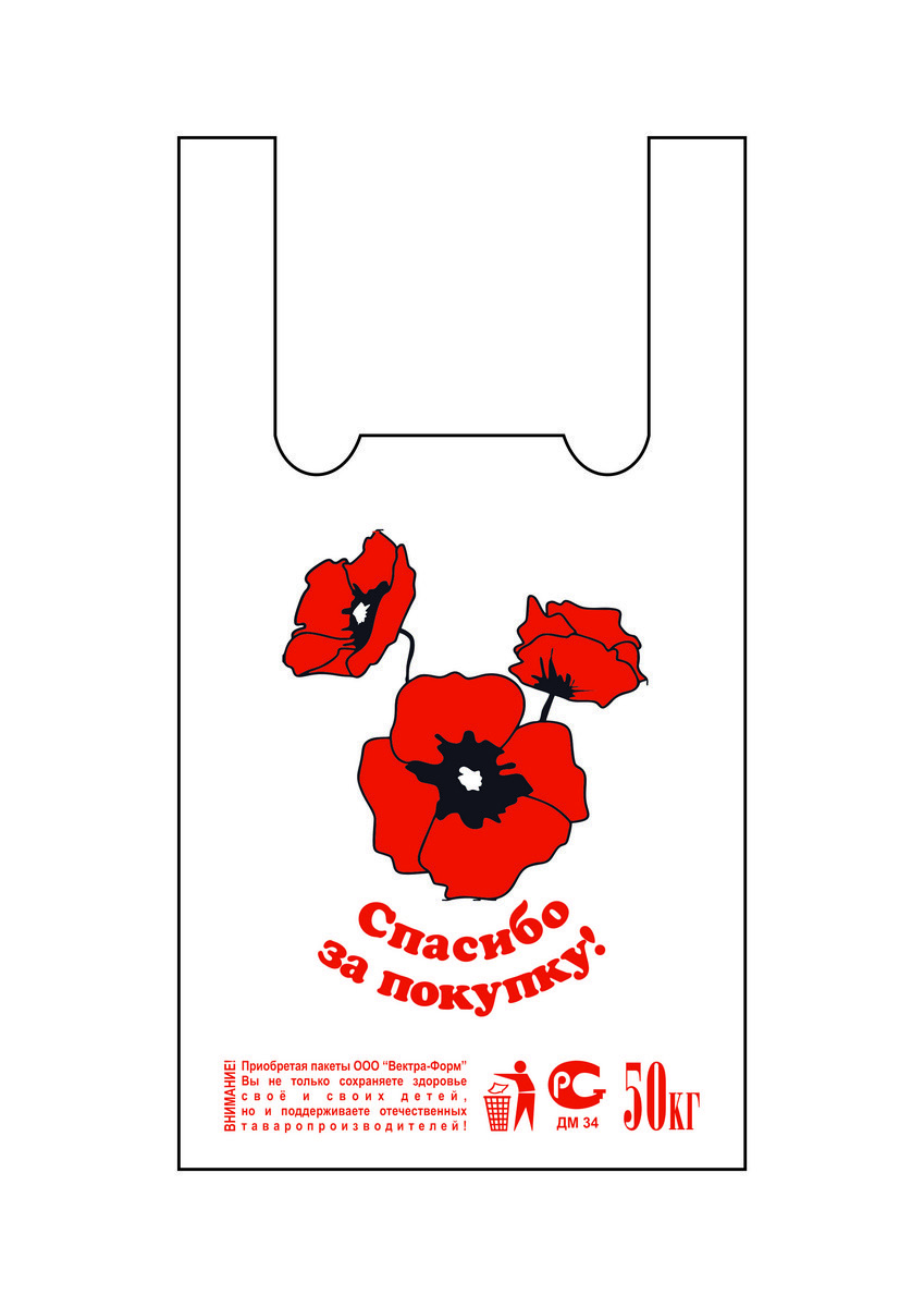 Майка пакет 28х50+12=13мк Маки белая СПЗ 100шт*30уп/3000 ВФ