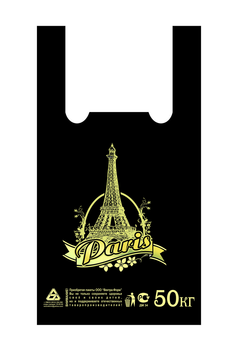 Майка пакет 30х55+16=25мк Париж зол,сереб черная 50шт*20уп/1000шт век