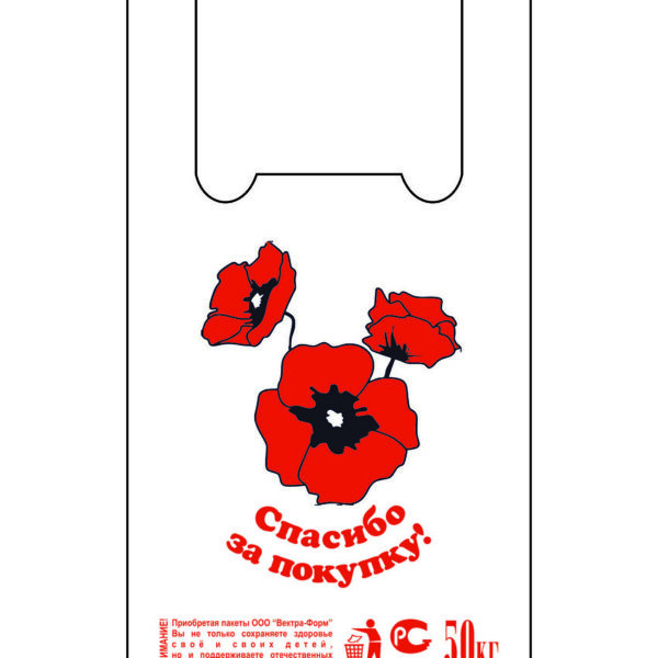 Майка пакет 28х50+12=13мк Маки белая СПЗ 100шт*30уп/3000 ВФ
