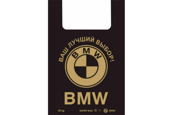 Майка пакет 42х65+20=25мк Авто-БМВ черная серебро 50шт*10уп/500 В