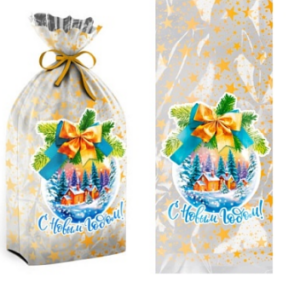 Майка пакет НГ 30х55+15=24мк Елочка НГ Желтая 50шт*20уп/1000 В