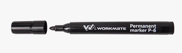 Перманентный маркер WorkMate чёрного цвета толщиной 3 мм используется для нанесения надписей и отметок на различные поверхности. Чернила на спиртовой основе устойчивы к воздействию влаги, перепадов температур, солнечных лучей, быстросохнут.