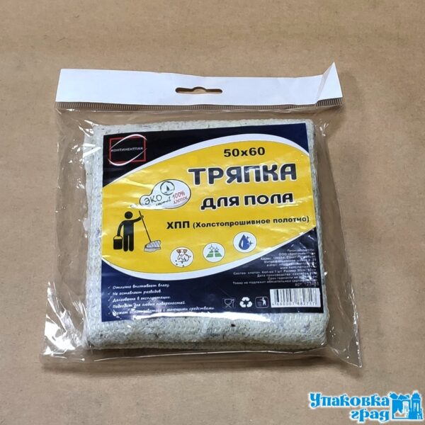 Тряпку для пола размером 50×60 см ХПП в индивидуальной упаковке используют для уборки помещений, мытья полов и протирания поверхностей.