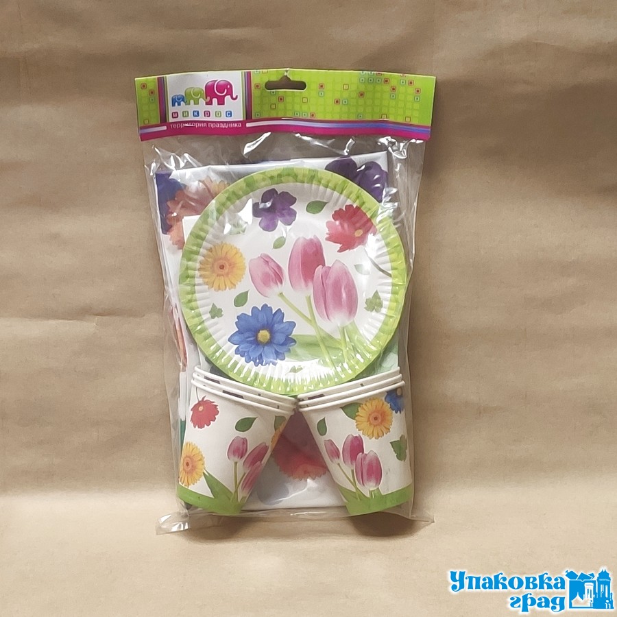 Стакан бумажный 250мл С ДР Цветочки 10шт