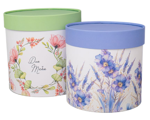 Набор коробок 2в1 цилиндр H18хD18см/H16хD16см, завальц.край, с крышкой, с рис. Космея