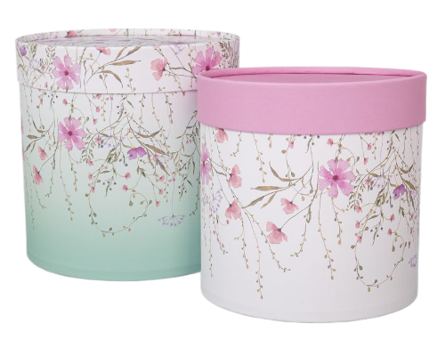 Набор коробок 2в1 шайба H7хD21/ H6хD18см, без окошка, завальц. край, розовый