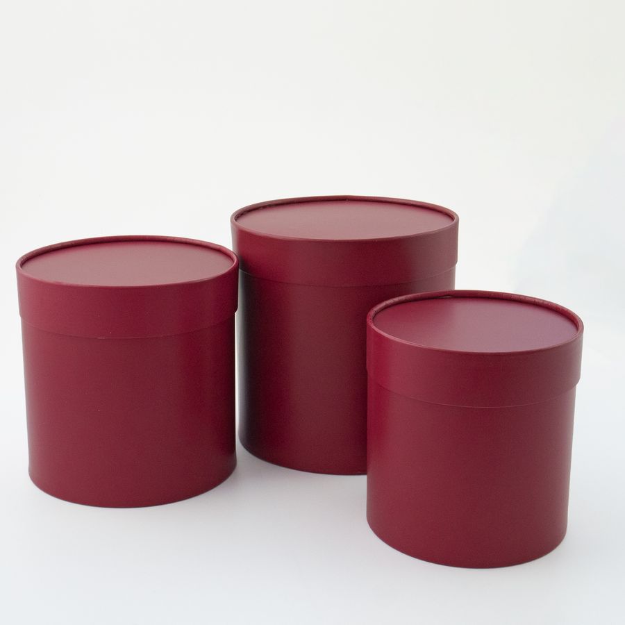 Набор коробок 3в1 цилиндр 18х18см 16х16см 14х14см Бордовая