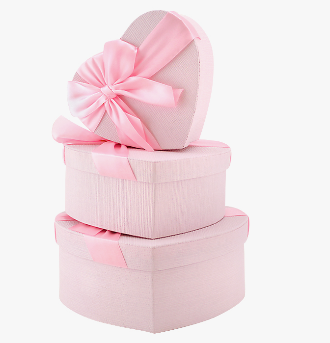 Набор коробок 3в1 сердце 22*18*9-18*14*7см с бантом, розовый