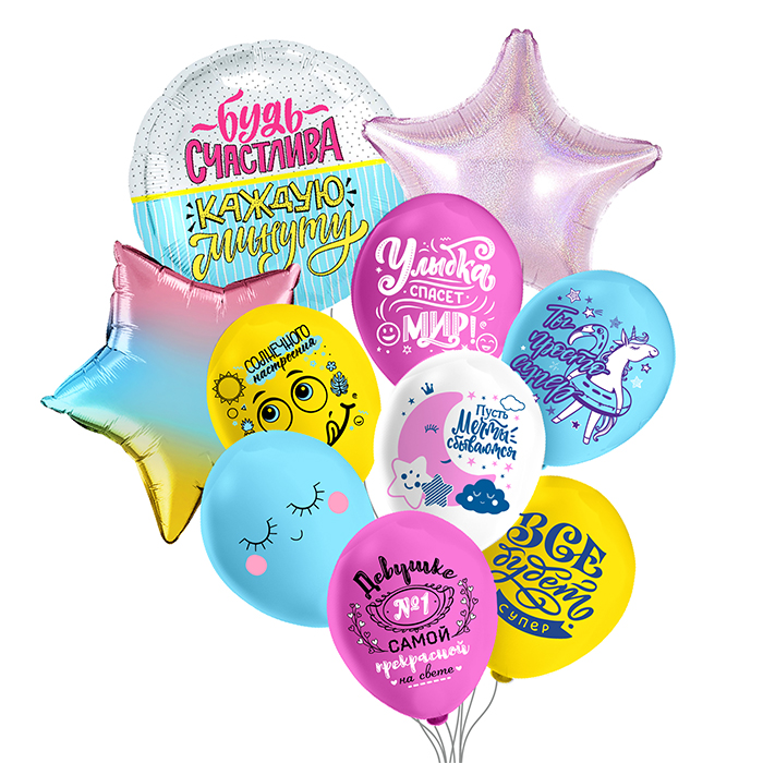 Набор шаров 10шт Букет Будь счастлива (3фольга+7латекс/рис)