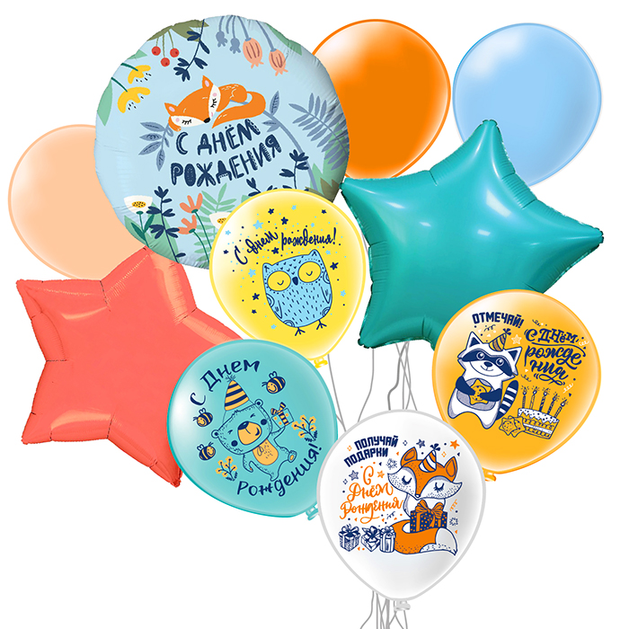Набор шаров 10шт Букет СДР Лисичка! (3фольга+4латекс/рис+3лат/б/рис)