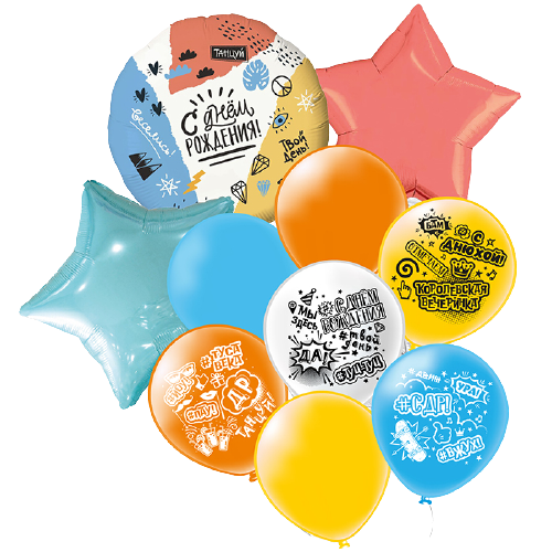 Набор шаров 10шт Букет СДР! С ДНЮХОЙ!(3фольга+4латекс/рис+3лат/б/рис)
