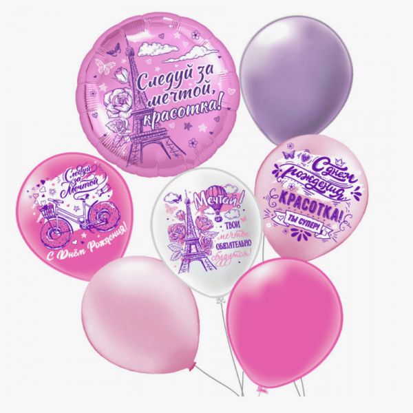 Набор шаров 8шт Букет СДР! Цветочки (1фольга+7латекс/рис)