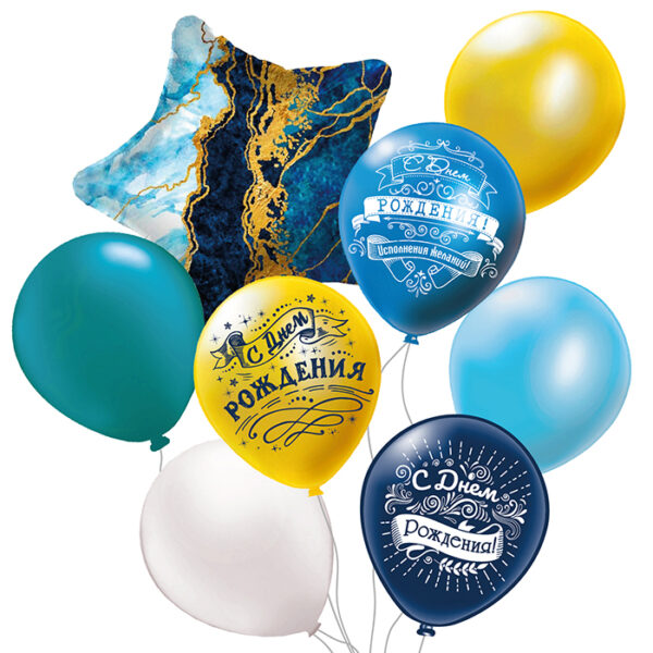 Набор шаров 8шт Букет СДР! Мрамор синий!(1фольга+3лат/ри+4лат/б/рис)