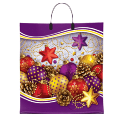Новогодний пакет из мягкого пластика, размер 23*27+10см. Используется для упаковки подарка, а так же для бытовых нужд. Продается по 10 штук.