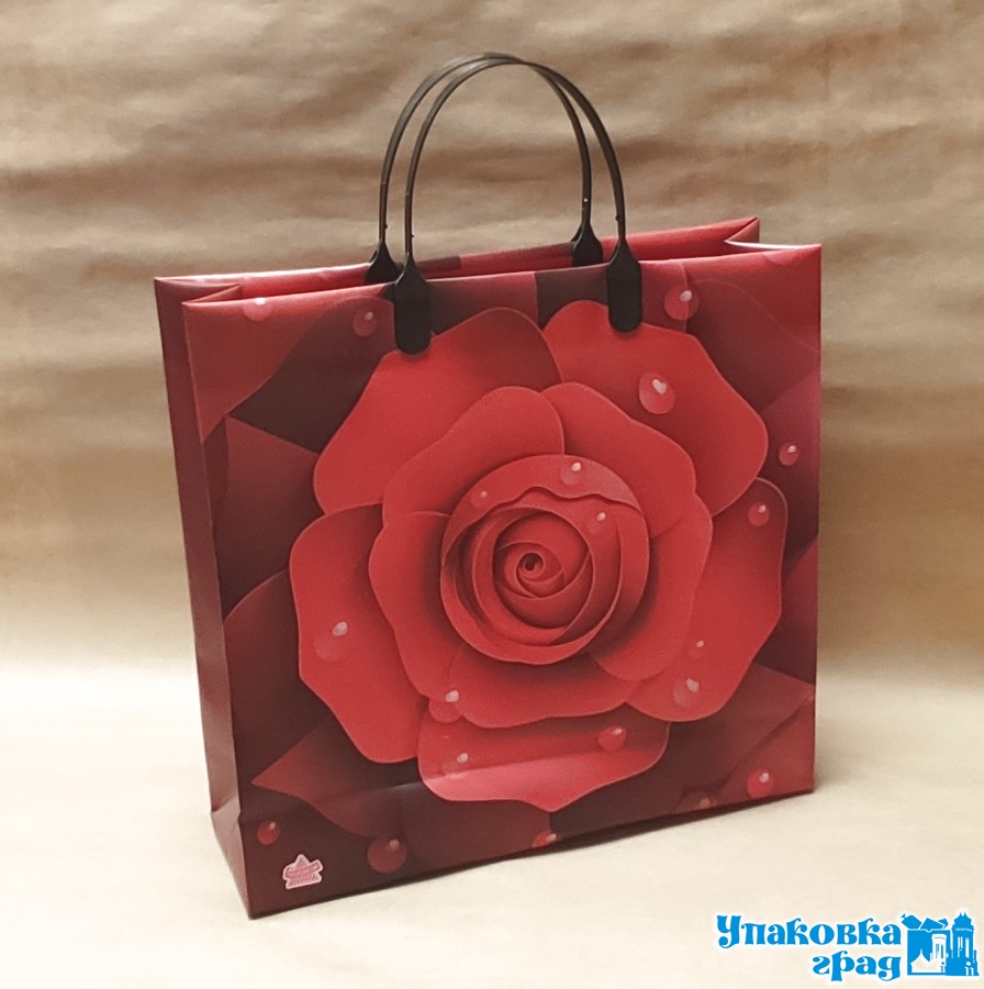Пакет с пластиковой ручкой, размер 36*35*5 см. Красивый плотный пакет подходит для использования в быту и как подарочная упаковка.