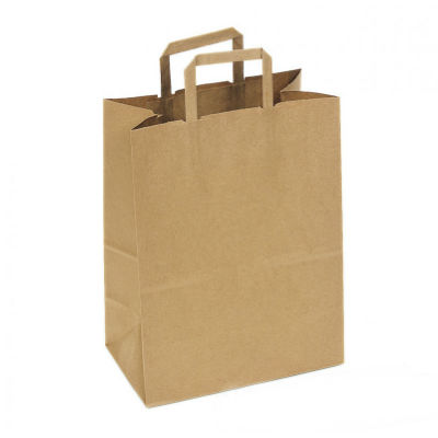 Пакет бум 240*140*280мм Крафт ручки плоские белый /300