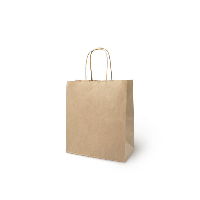 Бумажный пакет размером 260×150×350 мм с кручёными ручками используют для хранения и переноски продуктов питания и других бытовых товаров.Благодаря плотной бумаге пакет обладает высокой прочностью и отлично держит форму.