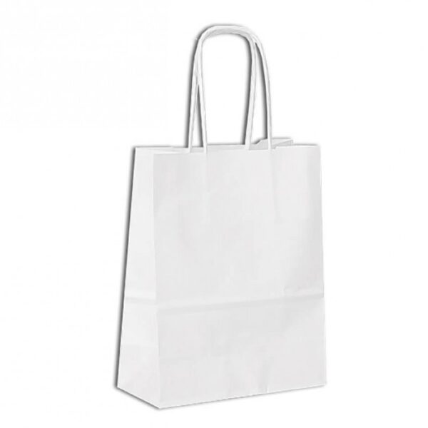 Бумажный пакет размером 240×140×280 мм с кручёными ручками используют для хранения и переноски продуктов питания и других бытовых товаров.Благодаря плотной бумаге пакет обладает высокой прочностью и отлично держит форму.