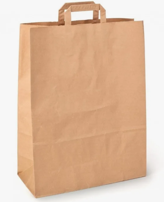 Пакет бумажный крафт с плоскими ручками, размер 350*150*450мм Используется для упаковки и транспортировки различных товаров. Благодаря плотной бумаге, пакет обладает высокой прочностью и отлично держит форму.