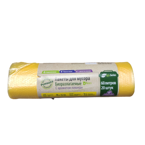 Мешки для мусора Ромашка 60л, 20штук в рулоне. Двухслойные надежные мешки изготовлены из полиэтилена высокого давления (ПВД). Идеально подходит для использования в быту, в офисах, в учреждениях образования, здравоохранения.