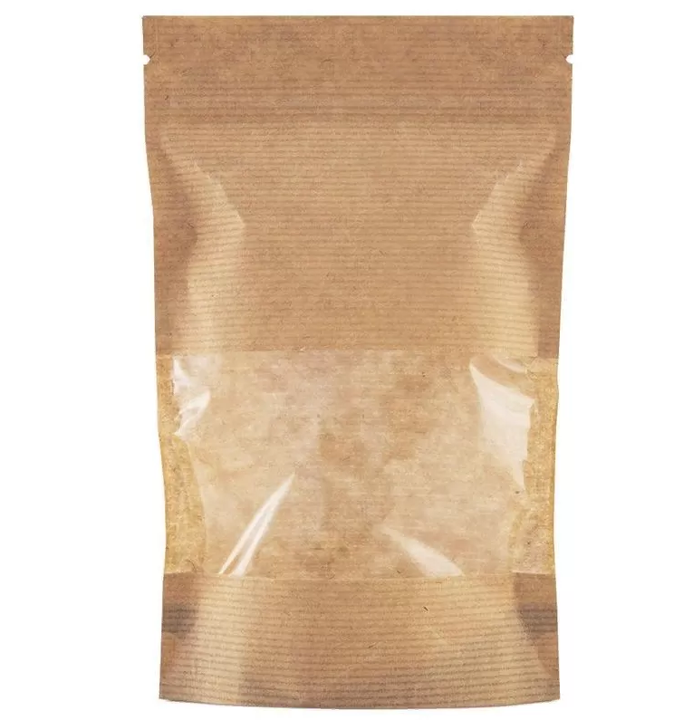Пакет Дой-Пак 140*225+40+40мм Крафт с окном 70мм/зип-лок /50