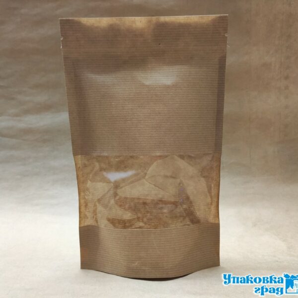 Пакет Дой-Пак 140*225+40+40мм Крафт с окном 70мм/зип-лок /50