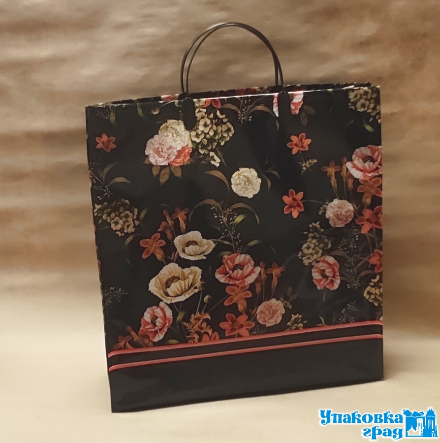 Пакет ПЭ 35*36+10 СПЛР Цветы на черном 10шт